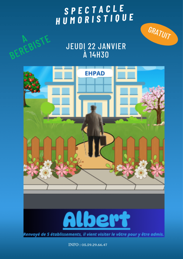 L’EHPAD Berebiste invite les Bastidos à participer gratuitement à un spectacle (théâtre comique) organisé au sein de l’établissement le jeudi 22 janvier 2026 à 14h30.